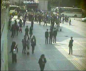 (2)9:53:58左右A出口的这些销售人员突然混乱起来,随即人员在A出口对出的广场上奔跑、追赶、聚集,有见到有人把一些纸张(传单)抛向空中,有见到有人员倒地,隐约可见有人员在推搡和殴打。其他路人则在一旁观看,并无明显异样。9:54:50左右A出口的骚动归于平静。